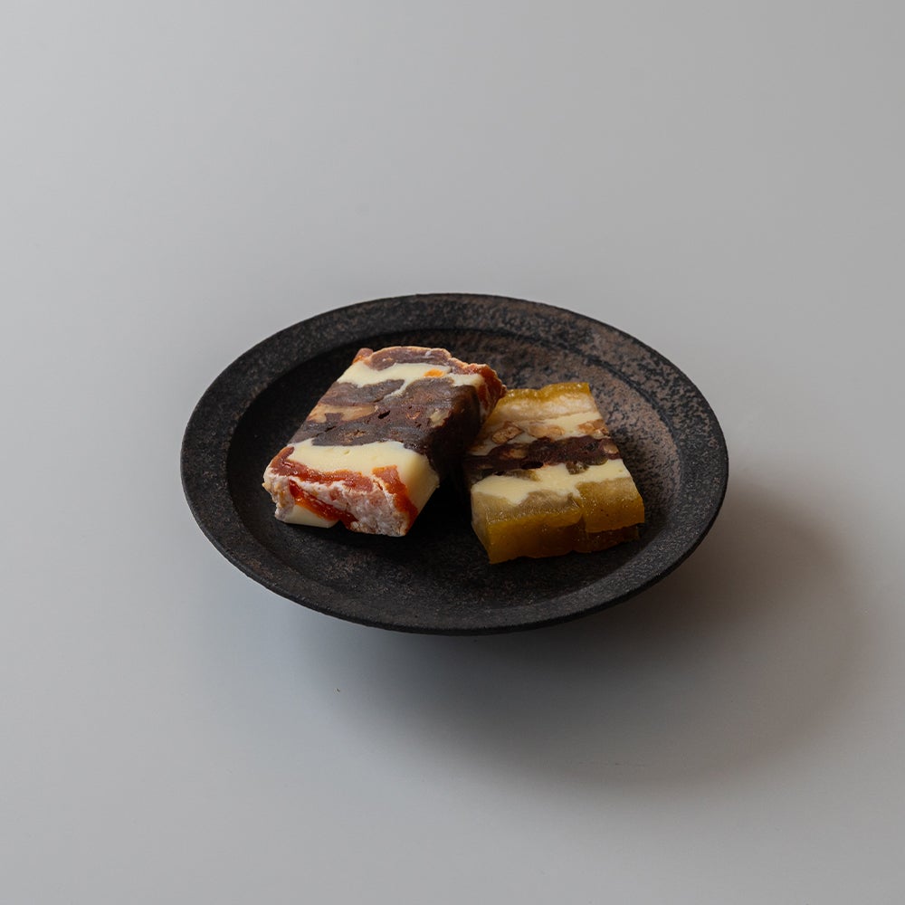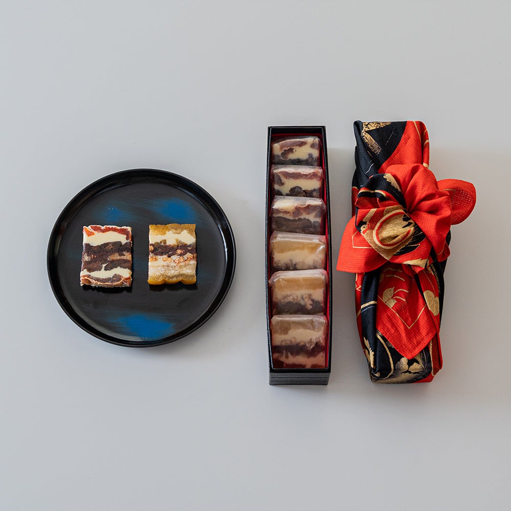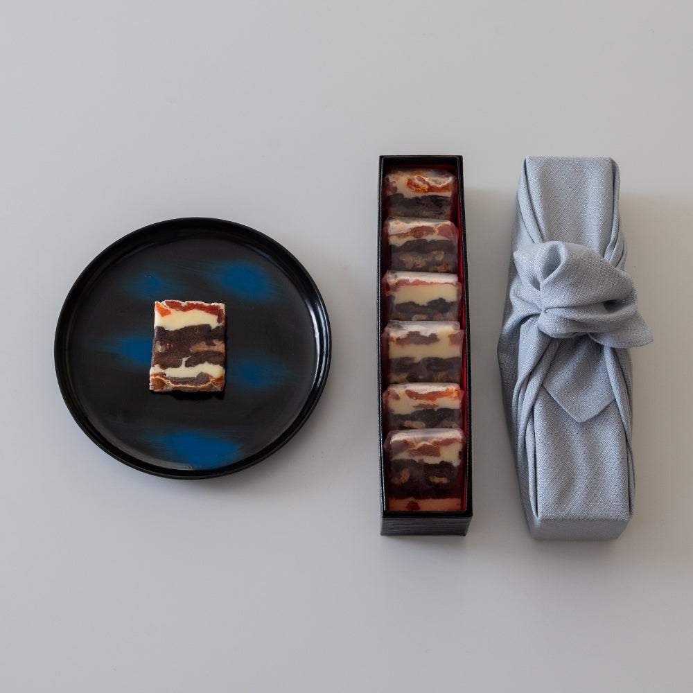 素材の色合いと立体感が織りなす、見た目にも贅沢なアートのような菓子。 -