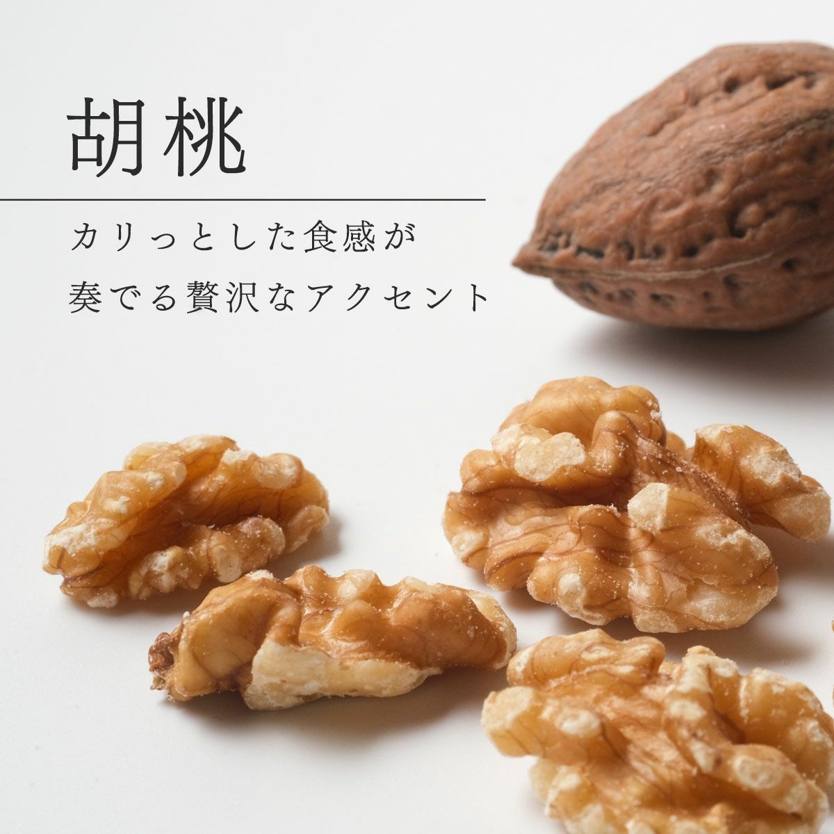 しっとりとしたセミドライ果実と、ナッツのカリッとした歯ごたえのコントラスト。
