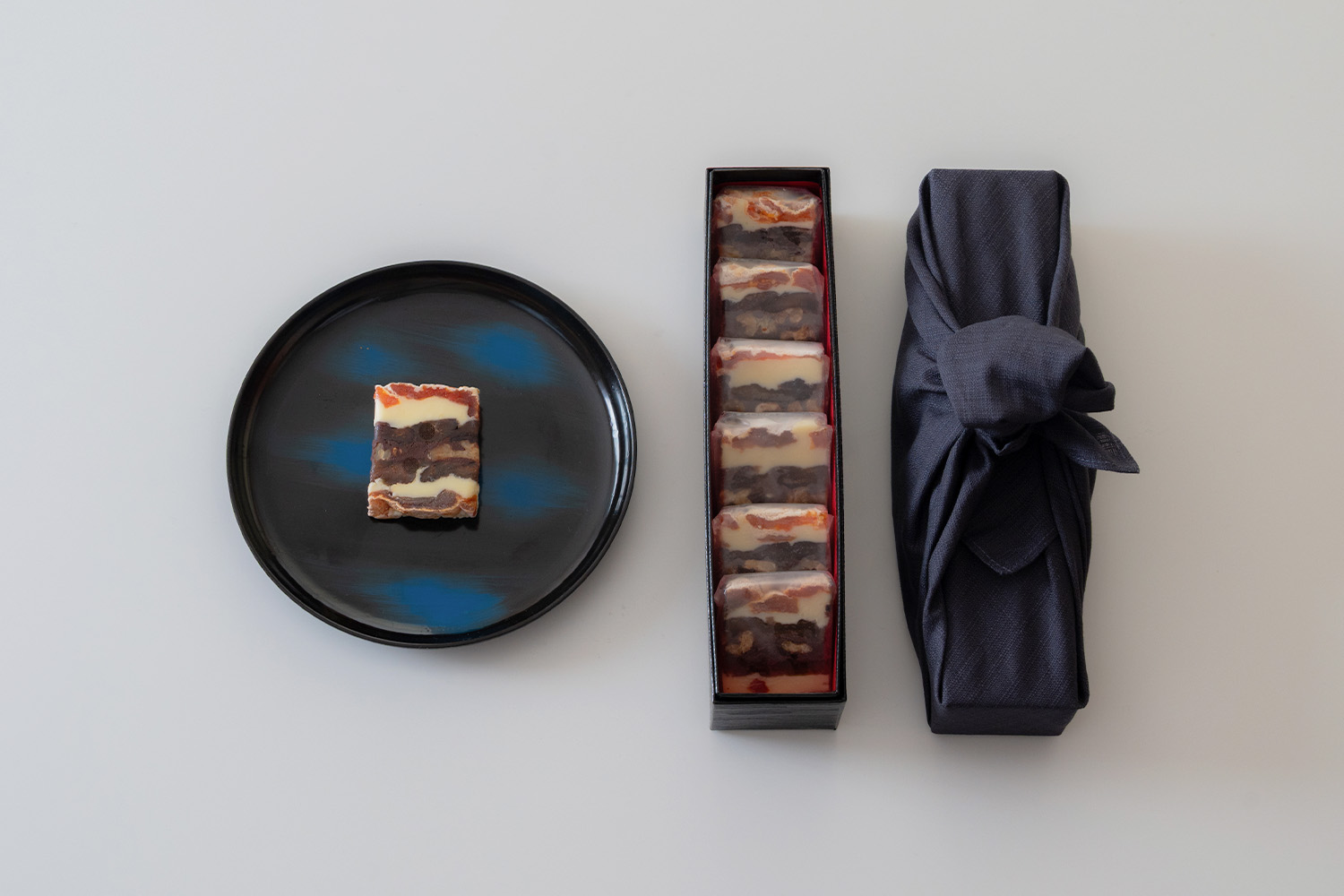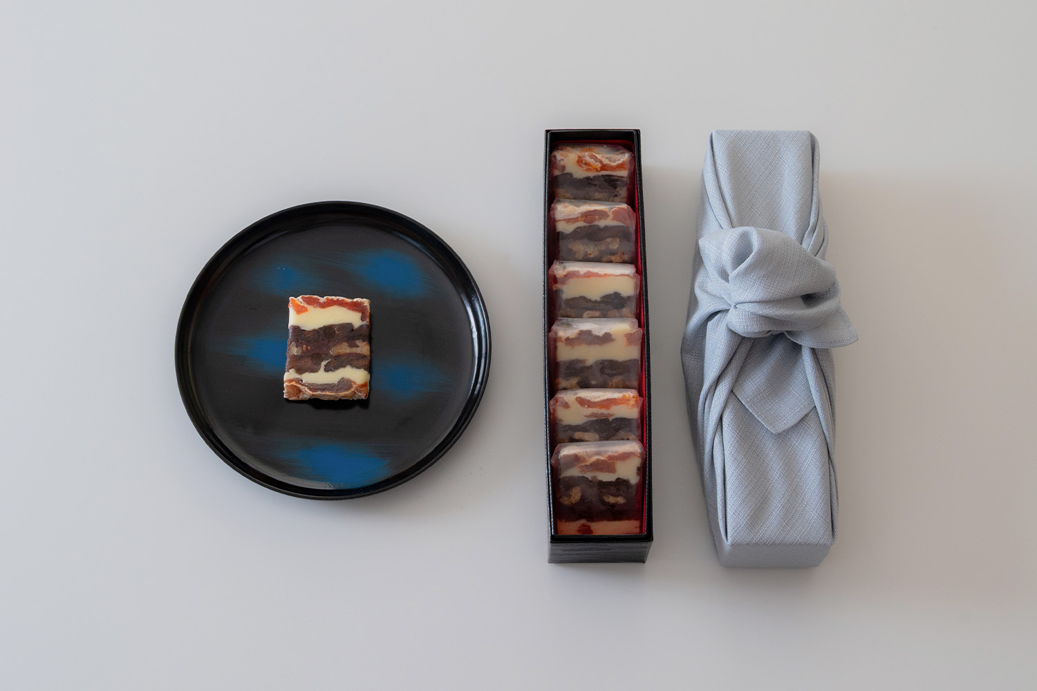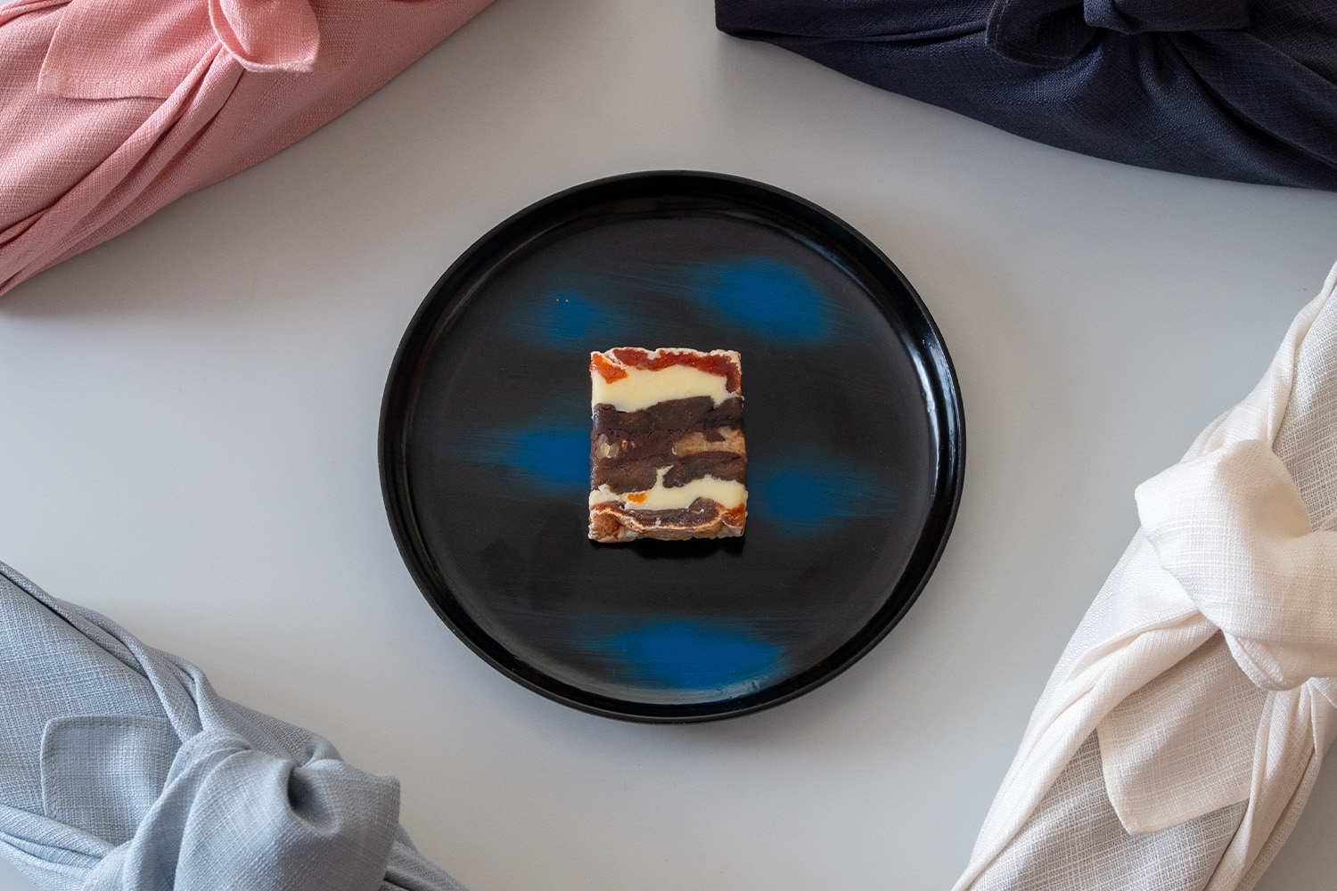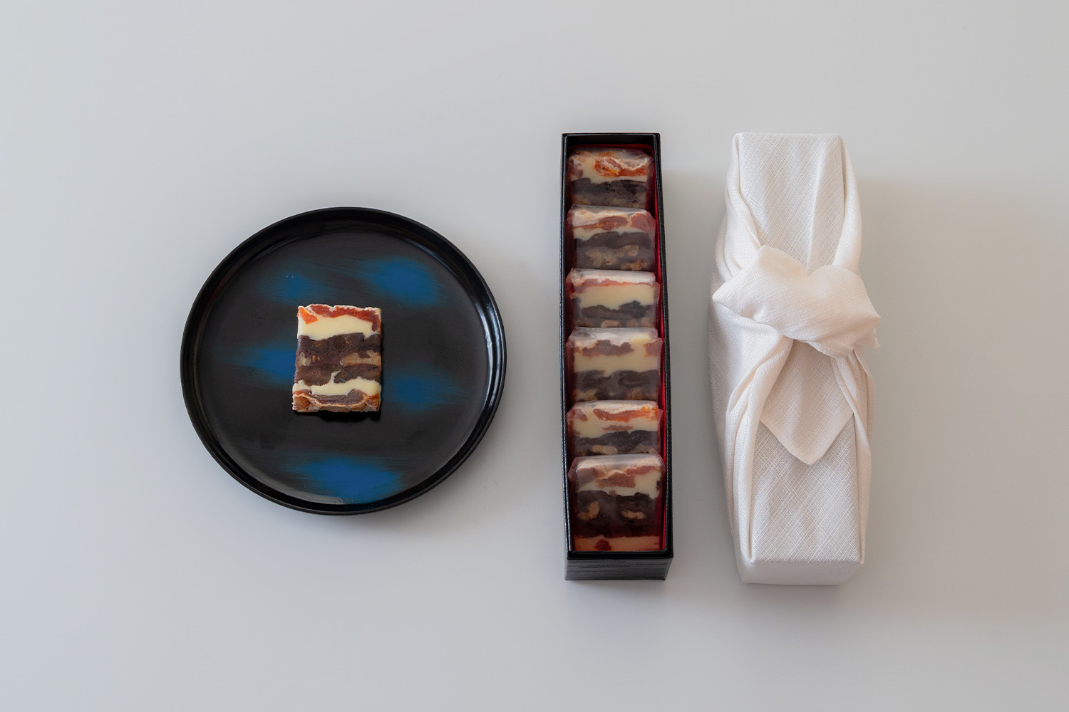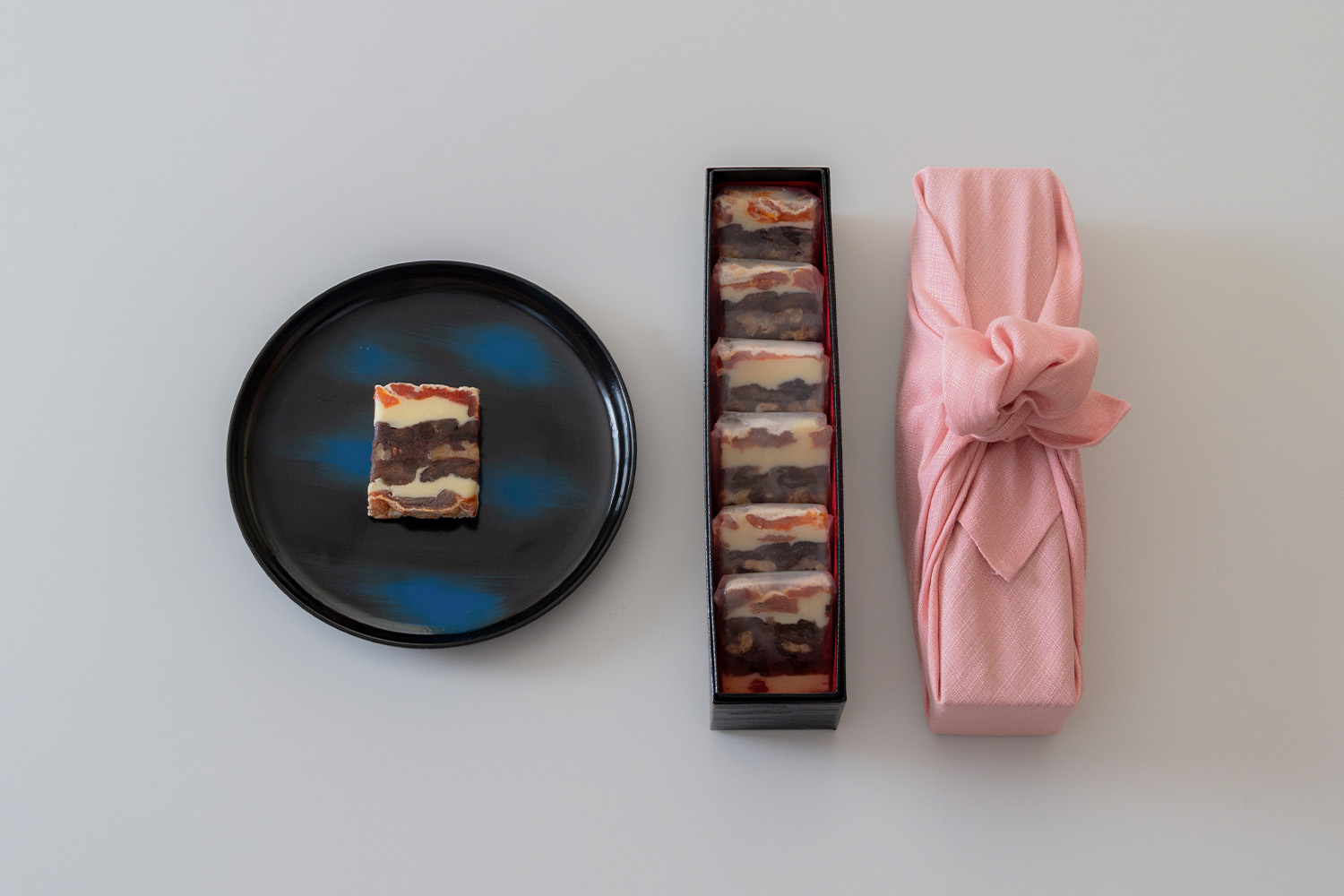 株式会社ぐるなびが運営する「こちら秘書室」公認 『“接待の手土産”セレクション2025』にて、 「特選」をいただいた極上の一品です。五感で感じる五重奏の美味しさは、5つの素材を8層に重ねることで生まれました。国産無花果の心地よいつぶつぶ感、干柿のねっとりとした自然な甘さ、胡桃のカリっとした食感、そして甘さを控えたホワイトチョコレートとビターチョコレートの5素材で構成しています。味も食感もまるで交響曲を聴いているような立体的な美味しさです。一口目の感動をぜひご体験ください。