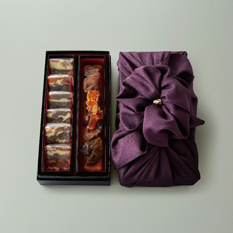 農林水産省の「フード・アクション・ニッポン アワード2017」で【今一番食べてほしい、美味しい日本の逸品】を受賞した極上の一品です。五感で感じる五重奏の美味しさは、5つの素材を8層に重ねることで生まれました。国産無花果の心地よいつぶつぶ感、干柿のねっとりとした自然な甘さ、胡桃のカリっとした食感、そして甘さを控えたホワイトチョコレートとビターチョコレートの5素材で構成しています。味も食感もまるで交響曲を聴いているような立体的な美味しさです。一口目の感動をぜひご体験ください。