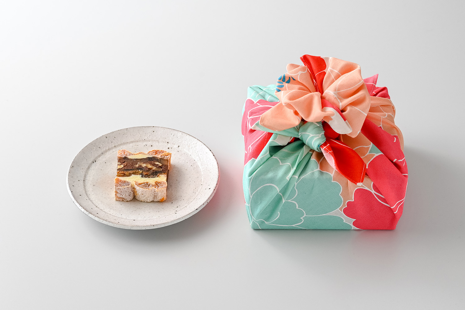 当店のフラッグシップ商品です。飾らないことで美しさを表現する京都の美意識から生まれました。余韻のある味わいをお愉しみいただけます。紅茶やコーヒーだけではなく、日本茶やワイン、ウイスキーにも似合います。牡丹の風呂敷に包まれた、春待つ贈り物。和の果実の贅沢な重なりを、大切な方へ。