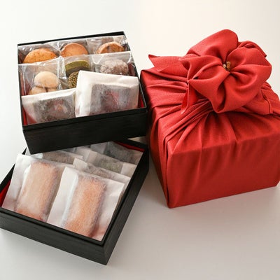 【リニューアル】京の花結び二段重-焼菓子詰合せ各種16個入り 風呂敷包のレビュー
